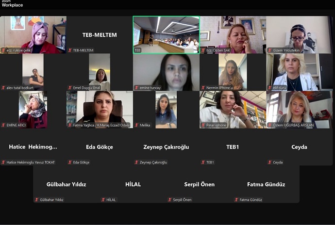 Toplantıda; kadın cinayetleri, çocuk istismarı ve diğer toplumsal şiddet olayları; Eczacıların, her türlü şiddetin karşısında yer alacak şekilde, ne tür çalışmalar yapabileceği ve Türk Eczacıları Birliği Tebeşir Online Eğitim Platformunda bu konuda yer alabilecek eğitim başlıkları ve içerikleri değerlendirildi.